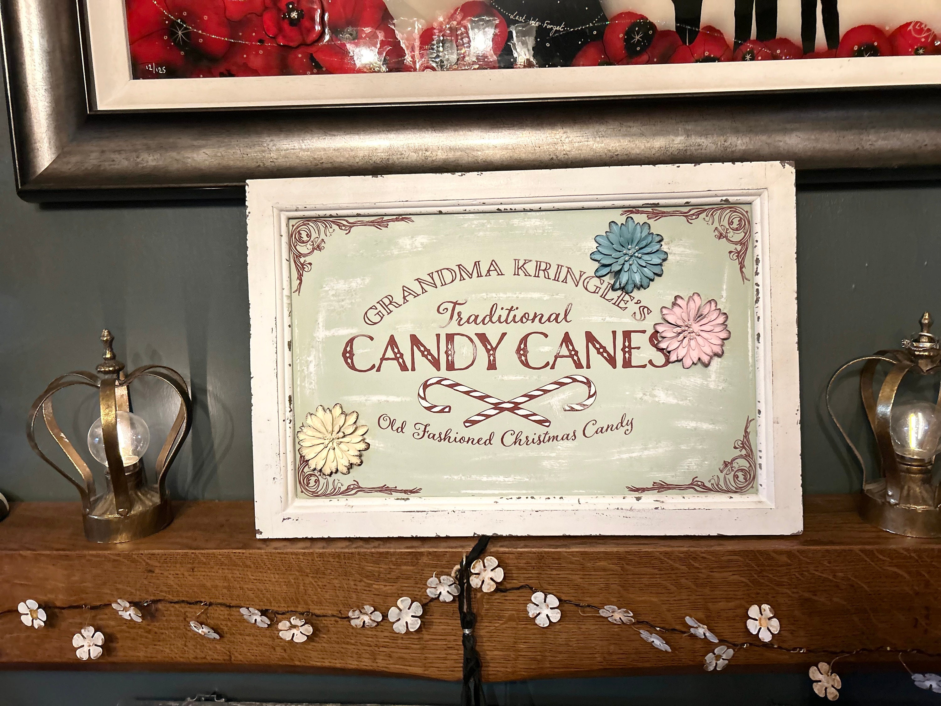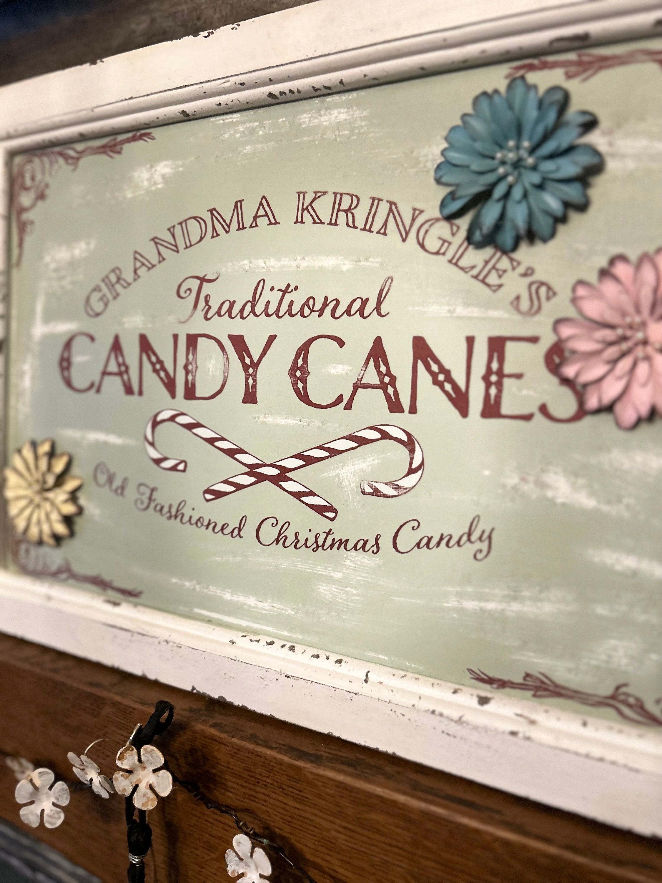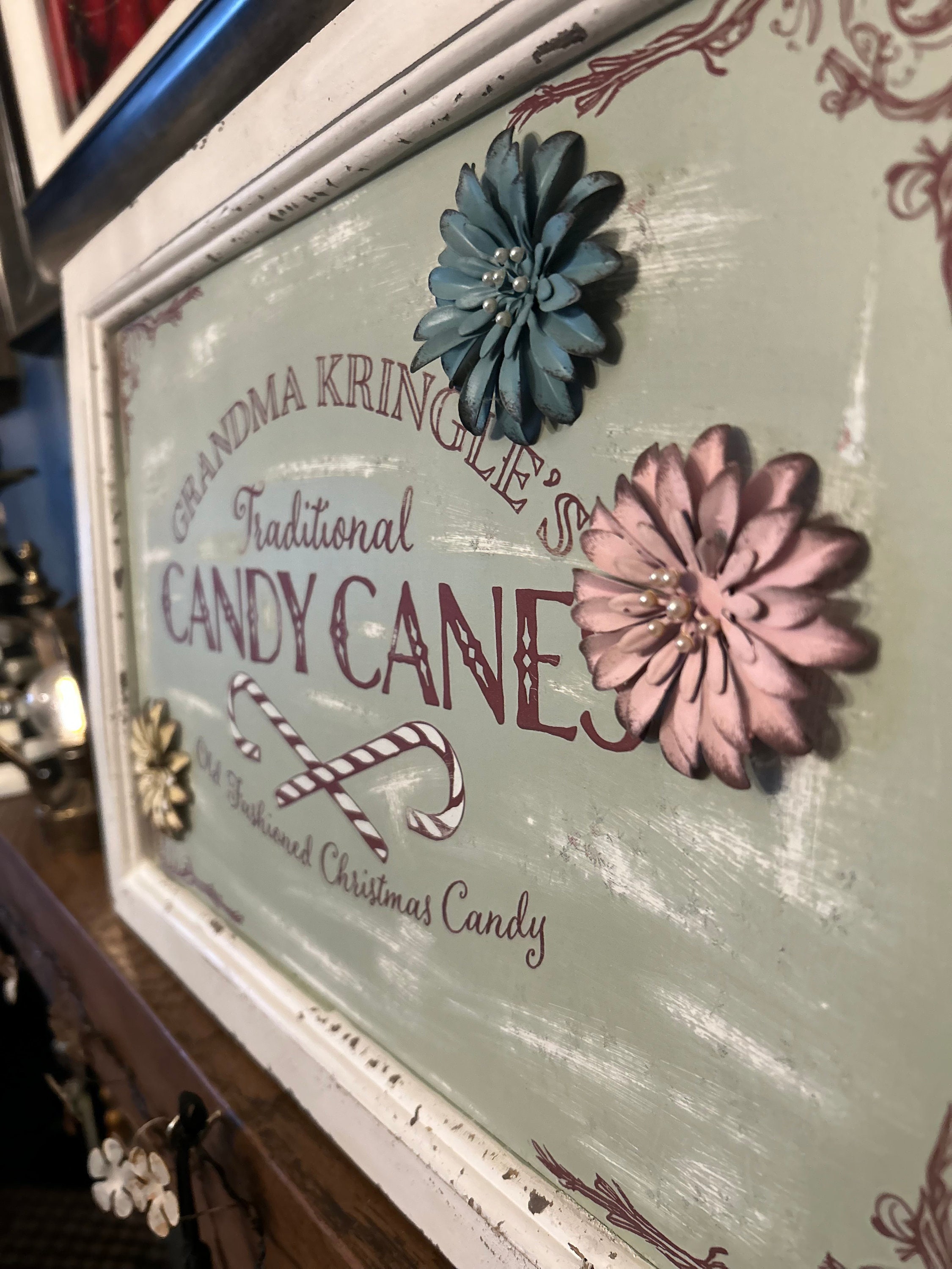 Rustic Christmas candy cane sign memo board,with 3 magnetic flowers