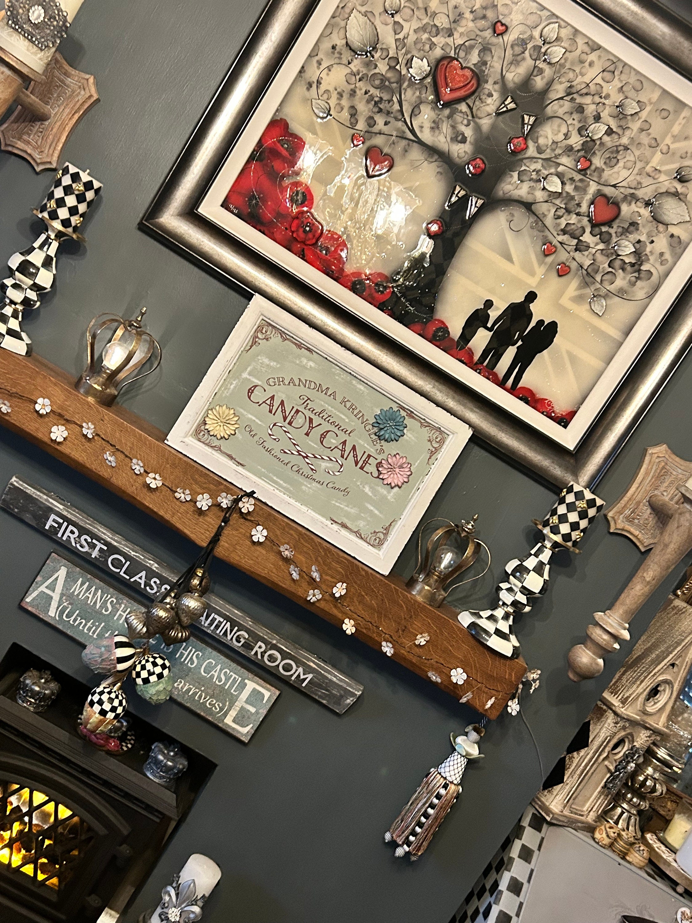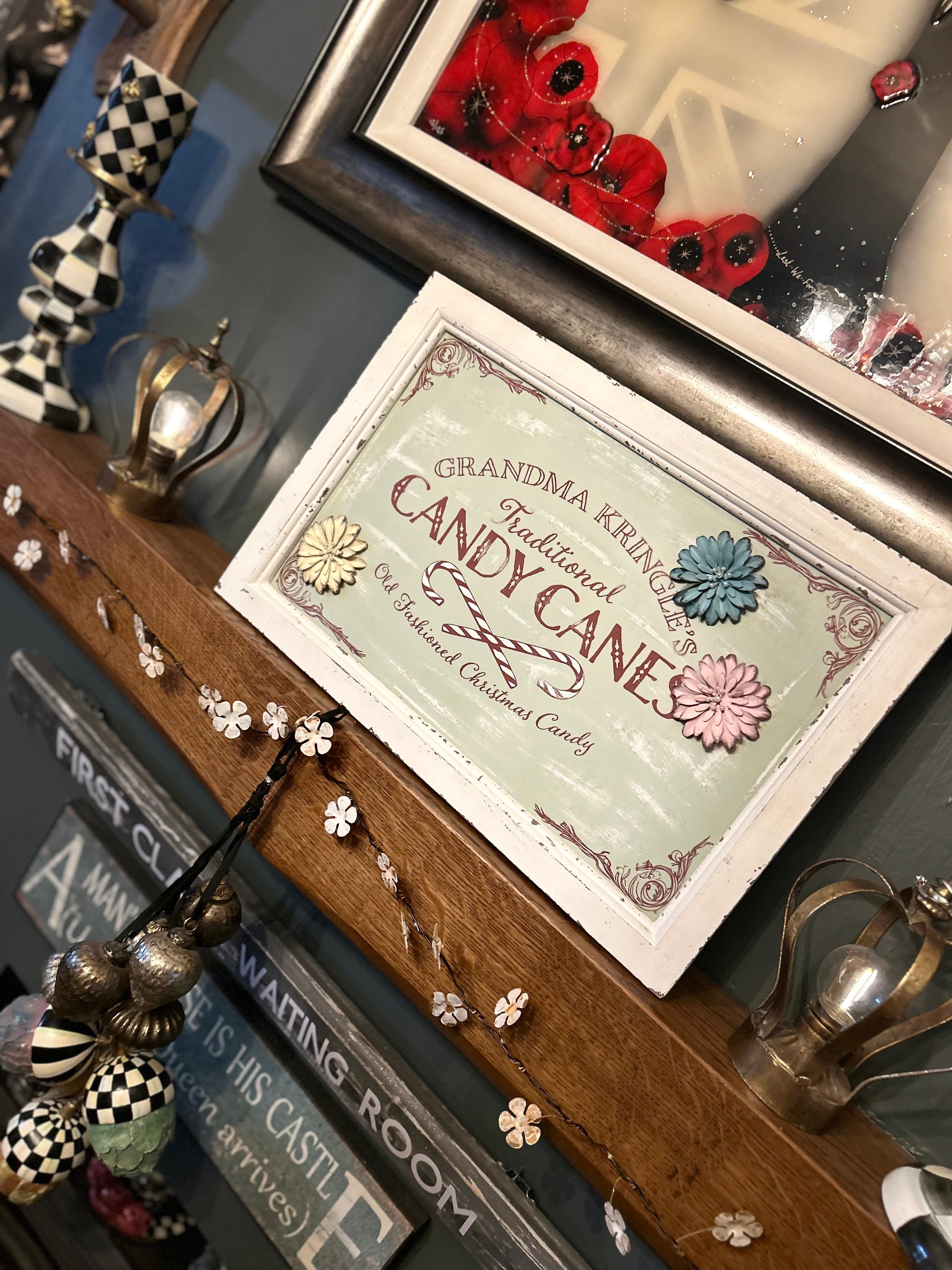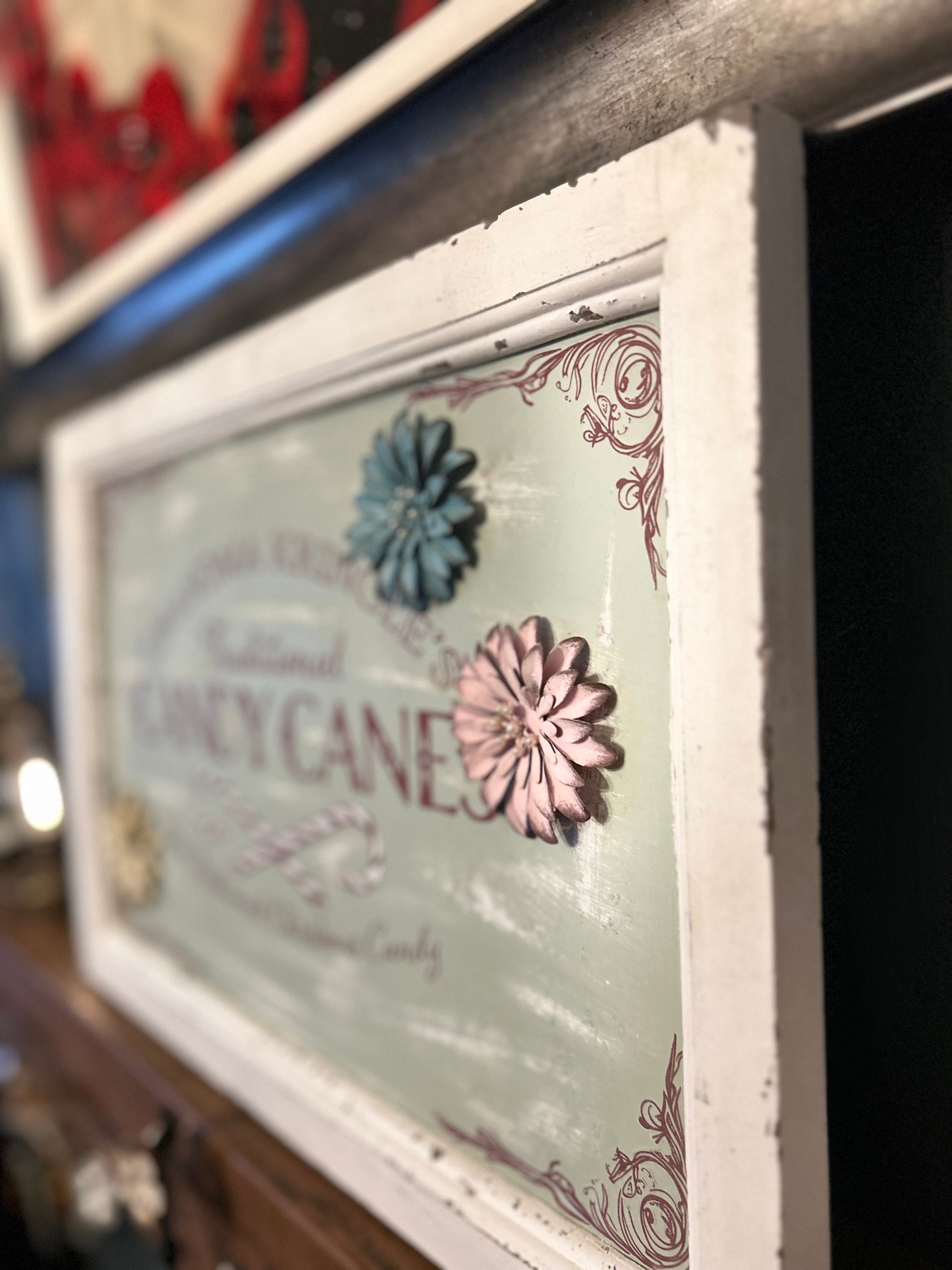 Rustic Christmas candy cane sign memo board,with 3 magnetic flowers